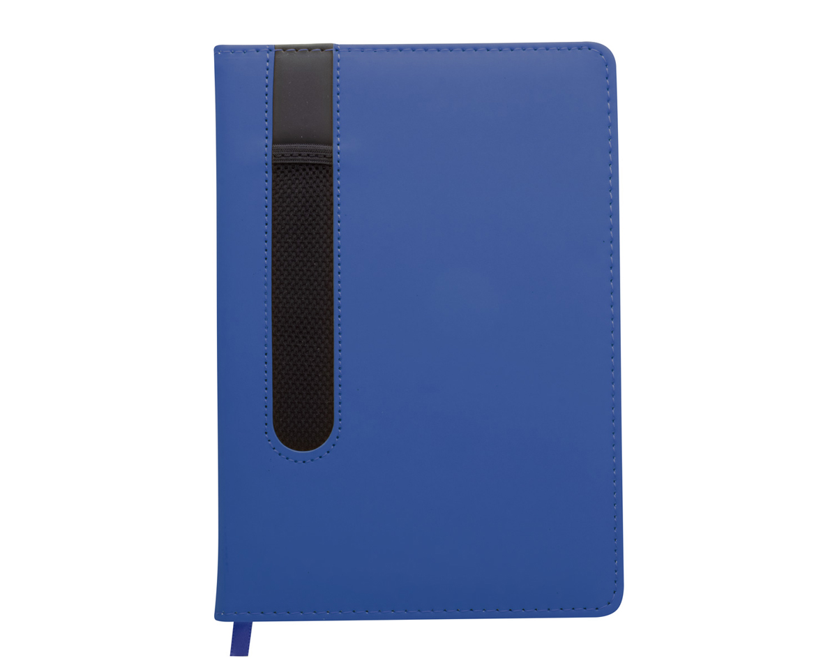 Descriere: blocnotes cu copertă din înlocuitor piele, 80 file veline, cu suport pentru pix.